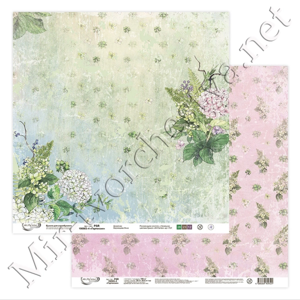 Бумага для скрапбукинга "Гортензия" 4, 190 г/кв.м 30.5x30.5 см, Mr. Painter