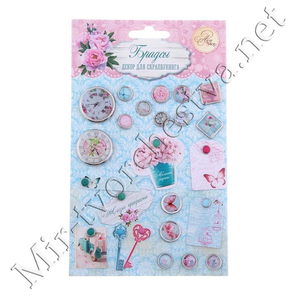 Набор брадсов для скрапбукинга с картонным декором "Shabby day", 11x14 см 1211952