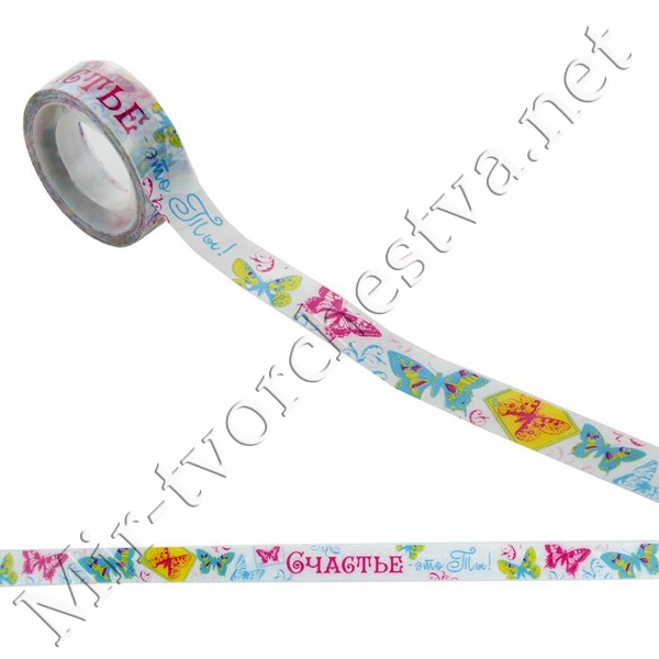 Скотч декоративный "Счастье - это ты", 1,5смх10м