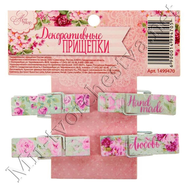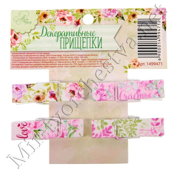 Набор декоративных прищепок "Цветы шебби" (4 шт), 10x10 см 1499470