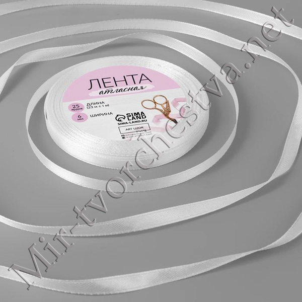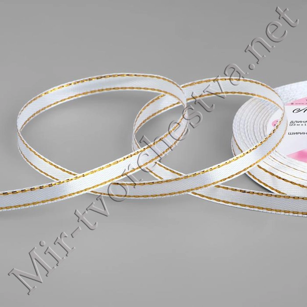Лента атласная «Золотые нити», 6мм, цвет Белый №001