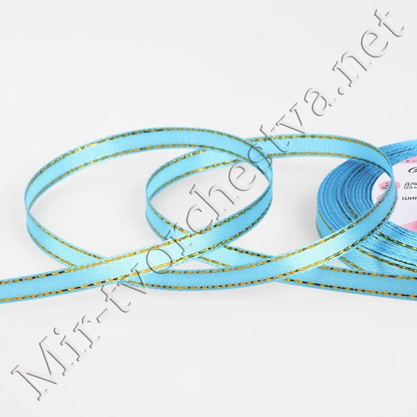 Лента атласная «Золотые нити», 6мм, цвет Голубой №020