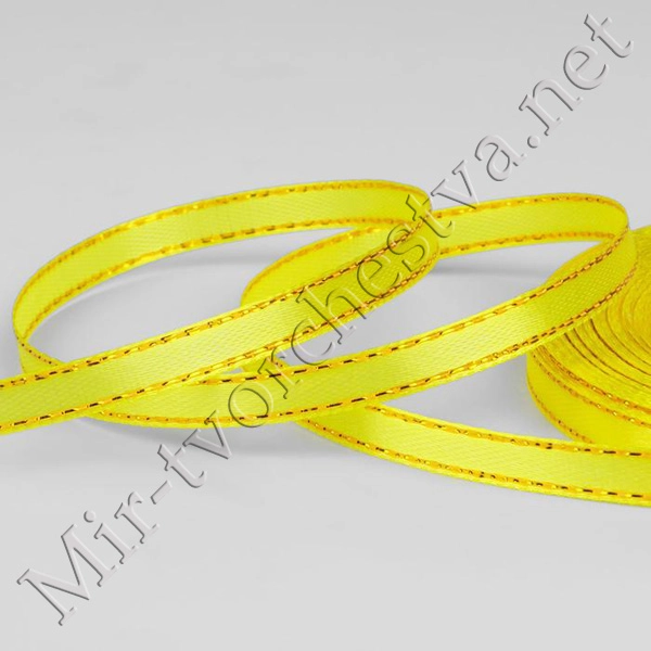 Лента атласная «Золотые нити», 6мм, цвет Жёлтый №015
