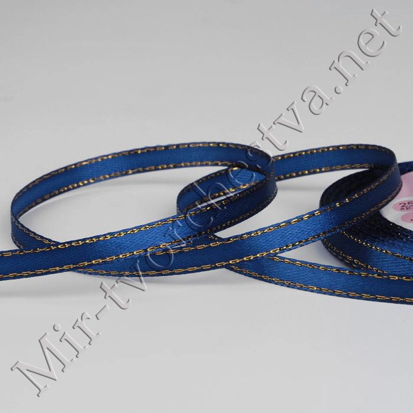 Лента атласная «Золотые нити», 6мм, цвет Синий №038