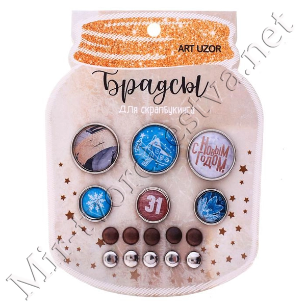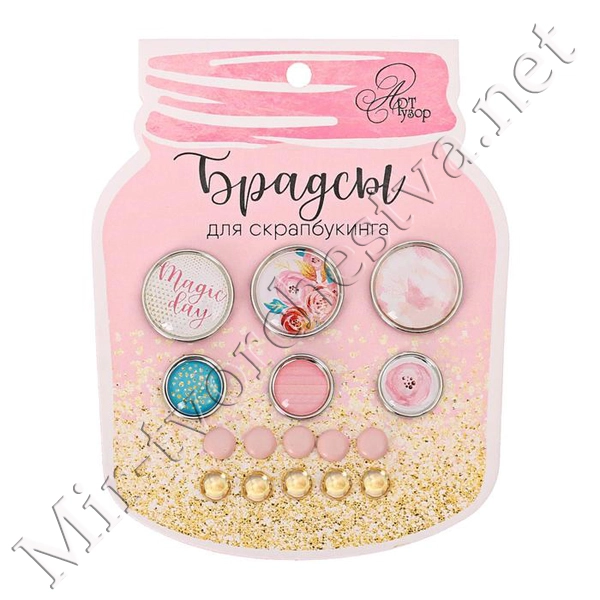 Набор брадсов для скрапбукинга с картонным декором Magic day, 8x10 см