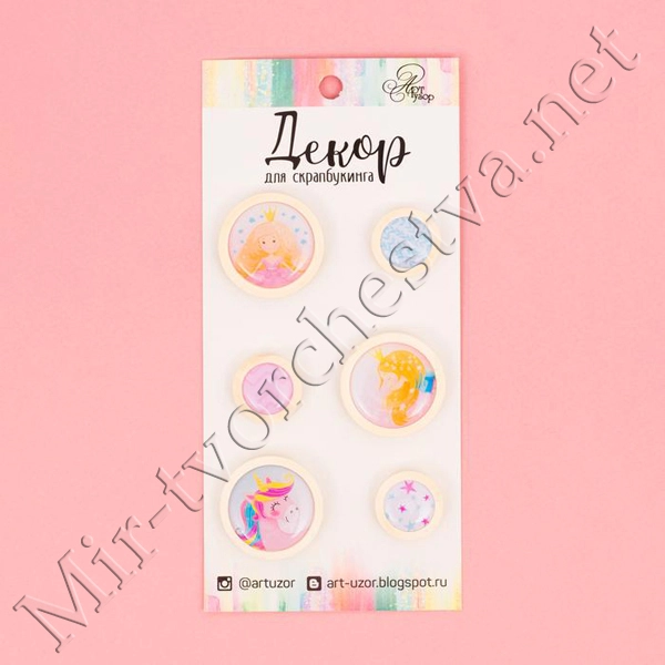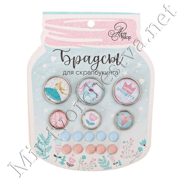 Набор брадсов для скрапбукинга с картонным декором Princess' dream, 8x10 см 2711873