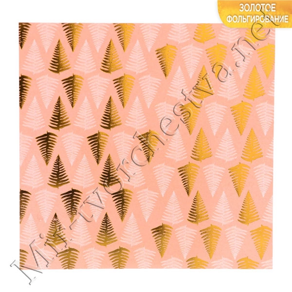Бумага для скрапбукинга с фольгированием «Листья», 15.5x15.5 см, 250 г/м 2735318
