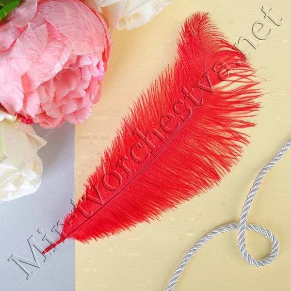 Перо для декора, размер: 24 см, цвет красный
