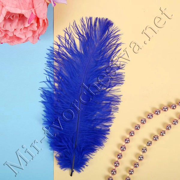 Перо для декора, размер:20-24 см, цвет синий
