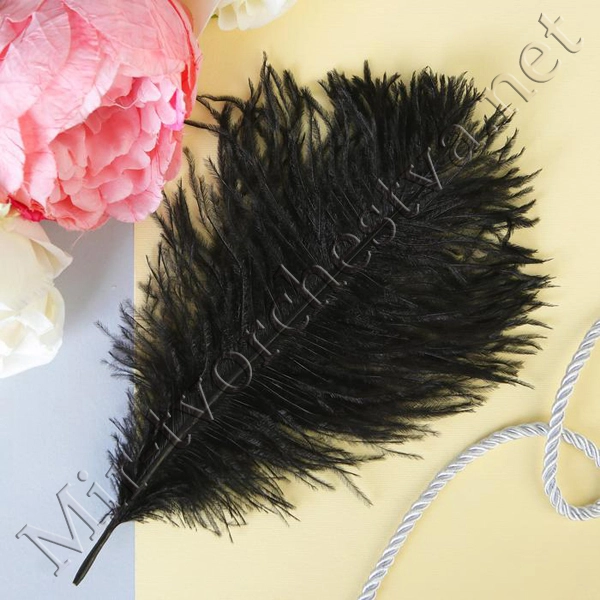 Перо для декора, размер 20,5x7,5 см, цвет чёрный