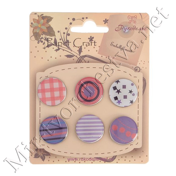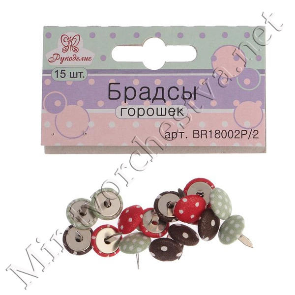 Набор брадсов для скрапбукинга Рукоделие "Горошек-2" тканевые, 15 шт