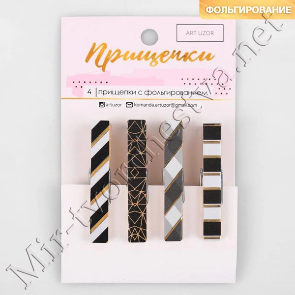 Прищепки декоративные с тиснением Black patterns, 11x7 см, Арт Узор