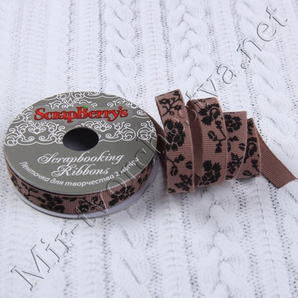 Лента с черным принтом "Какао" 1см, 2м 3695990