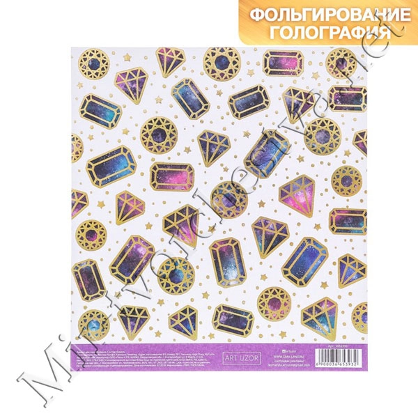 Бумага для скрапбукинга с фольгированием «Самоцветы», 15.5x17 см, 250 г/м 3665393