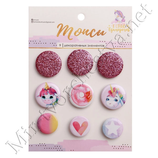 Набор топсов (фишек) для скрапбукинга «В стране единорогов», 10x14 см 3885440