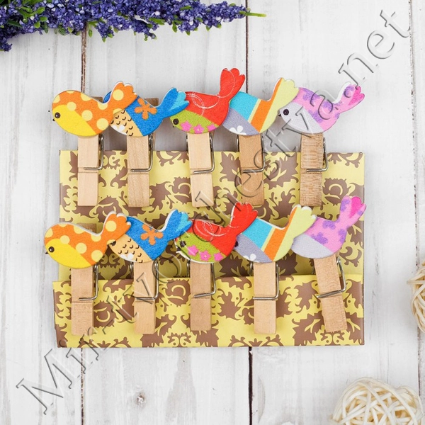 Прищепки декоративные с веревкой для подвеса "Весенние птички", Арт Узор