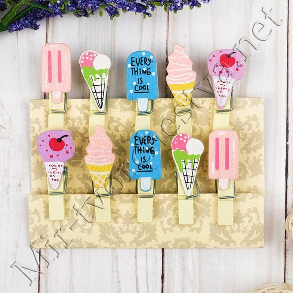 Прищепки декоративные с веревкой для подвеса "Мороженое", Арт Узор