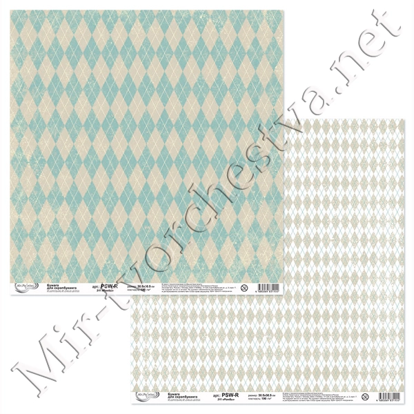 Бумага для скрапбукинга "Ромбы" 311, 190 г/кв.м 30.5x30.5 см, Mr. Painter