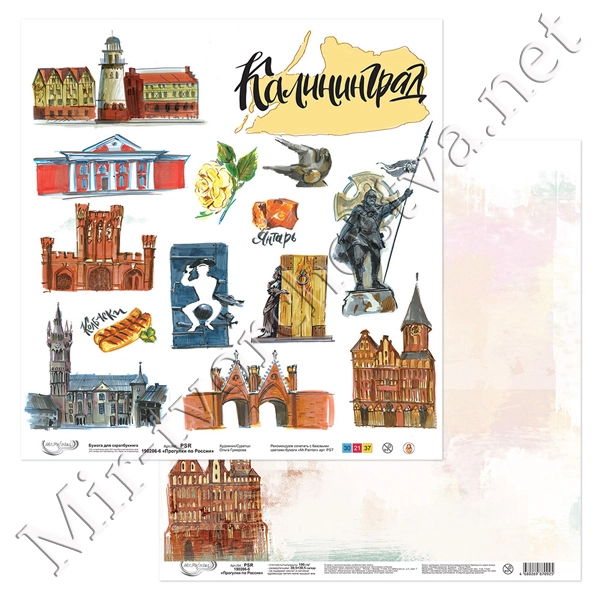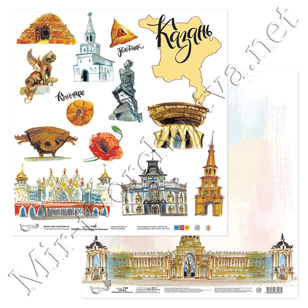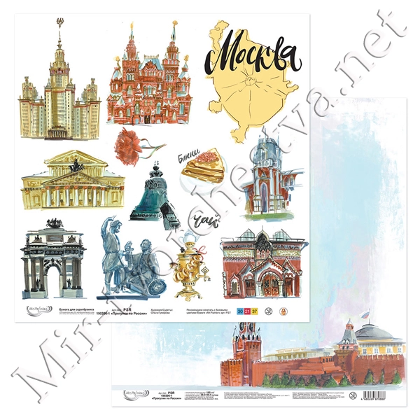 Бумага для скрапбукинга "Прогулки по России" 6, 190 г/кв.м 30.5x30.5 см, Mr. Painter