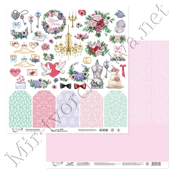 Бумага для скрапбукинга "Девичьи сны" 7, 190 г/кв.м 30.5x30.5 см, Mr. Painter