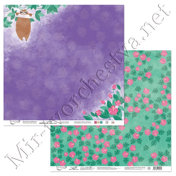 Бумага для скрапбукинга "Ешь. Люби. Спи" 4, 190 г/кв.м 30.5x30.5 см, Mr. Painter