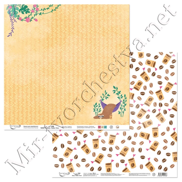 Бумага для скрапбукинга "Ешь. Люби. Спи" 2, 190 г/кв.м 30.5x30.5 см, Mr. Painter