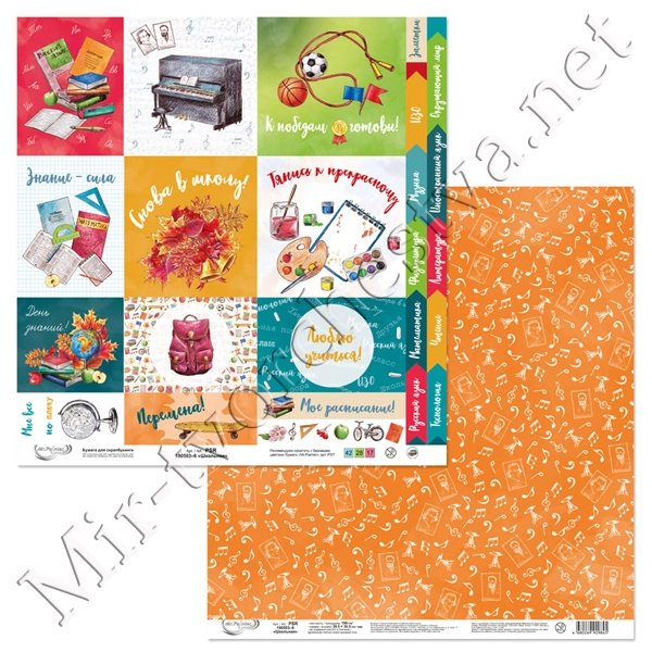 Бумага для скрапбукинга "Школьная" 2, 190 г/кв.м 30.5x30.5 см, Mr. Painter
