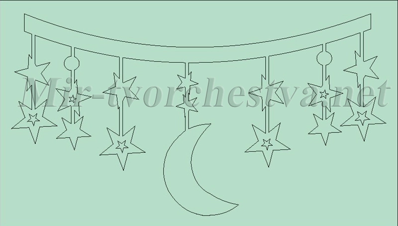 Чипборд, Подвеска с месяцем и звёздами, 114*65мм