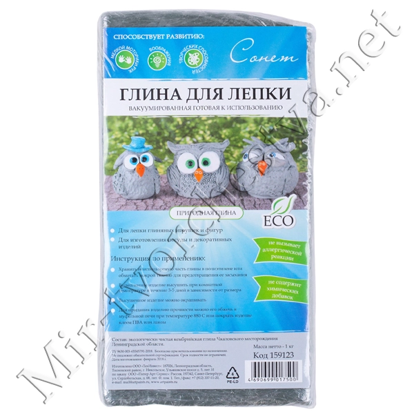 Глина для лепки вакуумированная, 1 кг, Сонет