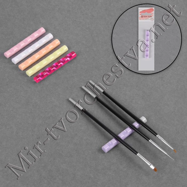 Кисти силиконовые для дизайна ногтей, 3шт., 18см, цвет Чёрный