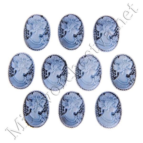 Камея "Дама с цветком" синяя 2,4х1,8 см 1651910