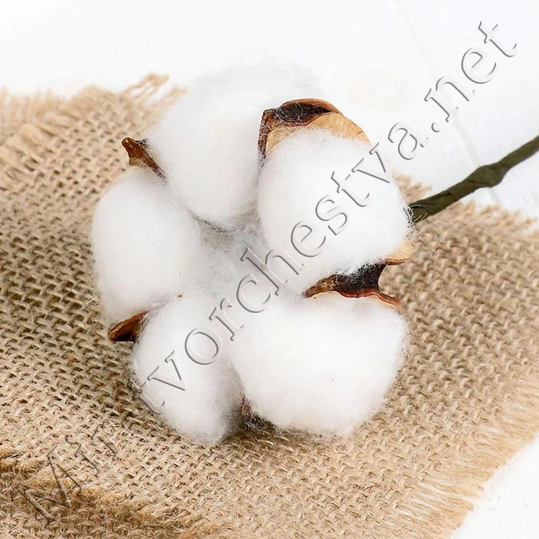 Декор сухоцвет "Хлопок" d-5см, 30см, Жёлтый