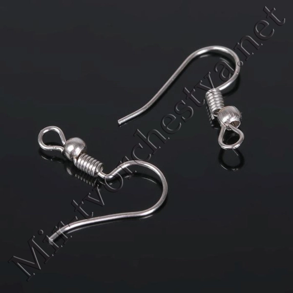 Швензы-крючки с бусиной, (набор 5 пар), цвет Серебро
