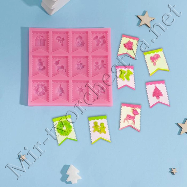 Молд силиконовый, «Новогодние флажки», 13,5x13,5x0,8 см, цвет МИКС