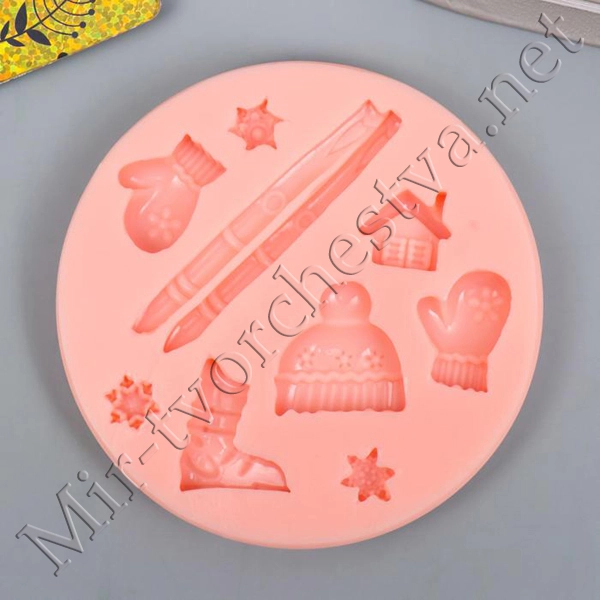 Молд силиконовый, "Зимние вещи" 1,5 см 7427956
