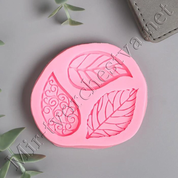 Молд силиконовый, "Листочки с узорами" 3 предмета 0.8x7.6x7.2см, (6946479/4288396)