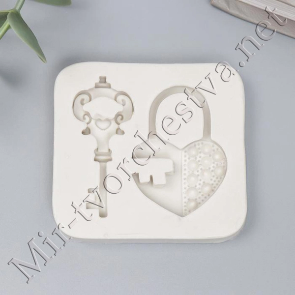 Молд силиконовый, "Ключик и замочек-сердце" 2 предмета 5,8х6,2х1 см 7432029