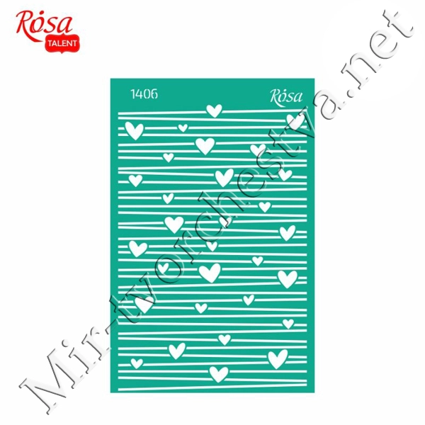 Трафарет многоразовый самоклеющийся, Фоновый 13*20 см, №1401, Серия "Влюбленные сердца", ROSA TALENT