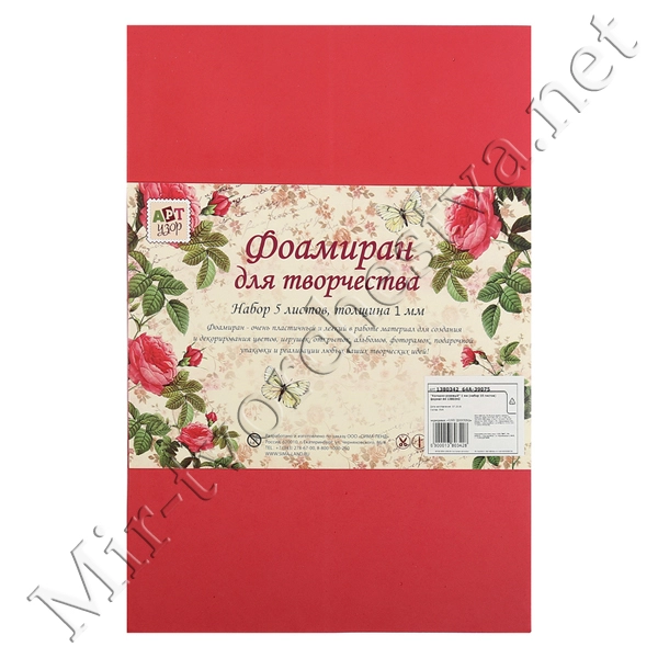 Фоамиран 1мм, "Томатный", А4, Арт Узор