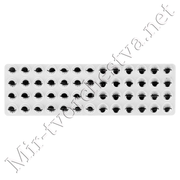 Набор глазок с ресничками на клеевой основе, 52шт., d:0,8см, цвет Чёрный
