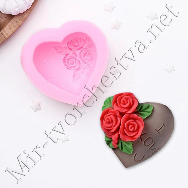 Молд силиконовый, «Роза в сердце», 7x4 см