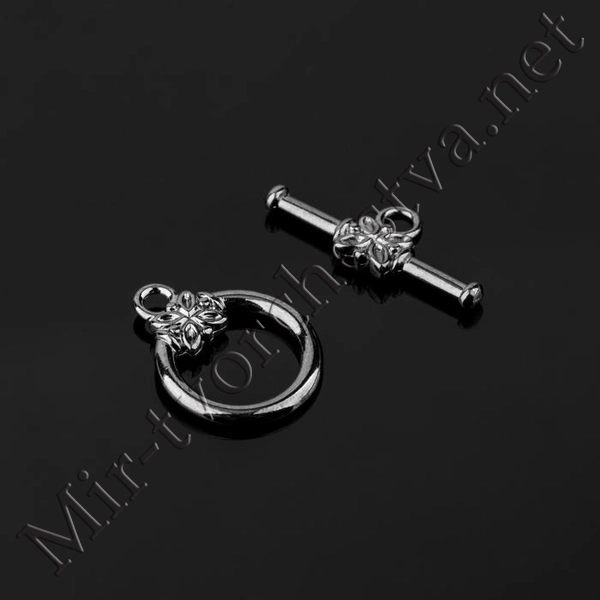 Замок-тогл "Цветок" вороненая сталь, 16*14мм (набор 2шт), цвет серый 5161499