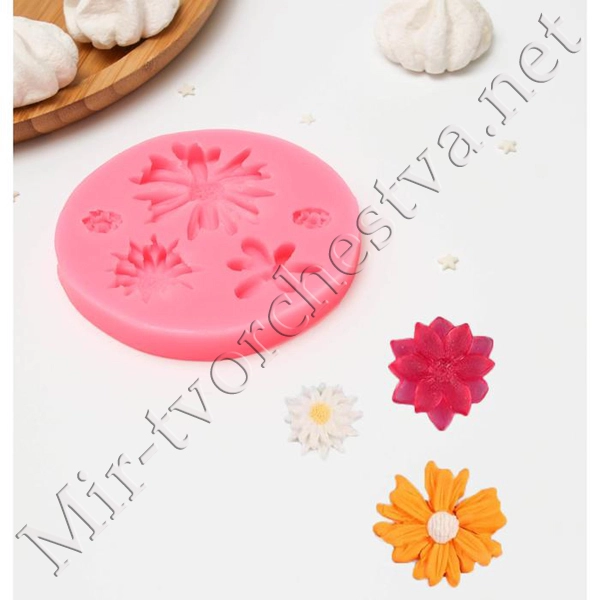 Молд силиконовый, «Цветочное ассорти», 10,5x10,5x1 см, цвет МИКС