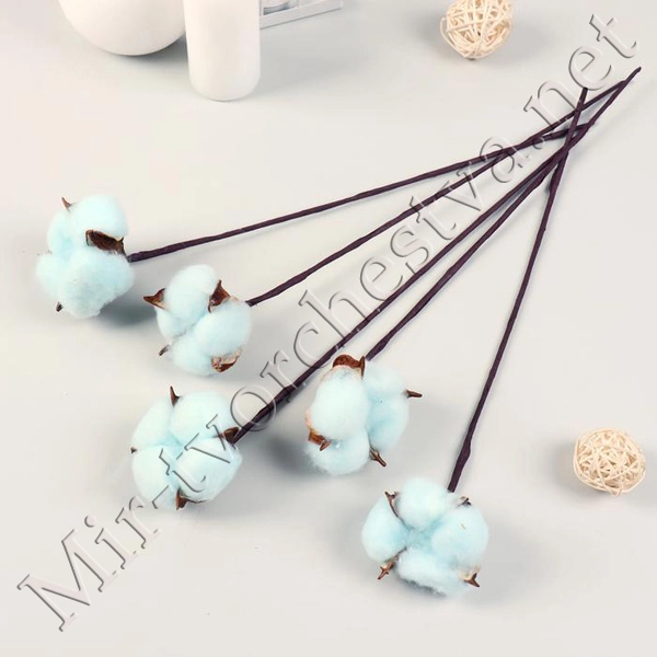 Декор сухоцвет "Хлопок" d-5см, 30см, Голубой