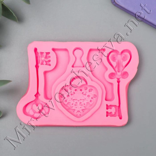 Молд силиконовый, "Ключик и замочек с сердцами" 2 предмета 6,5х6х1 см 6707476