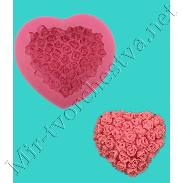 Молд силиконовый, "Сердце из роз" 3х7,3х6,7 см 6947510