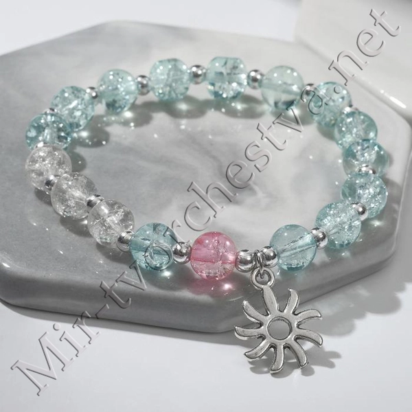Браслет "Радость" солнцее, d=7мм, цвет Бело-Голубой в серебр