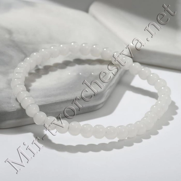 Браслет "Нить" бусина №4, d=7мм, цвет Белый