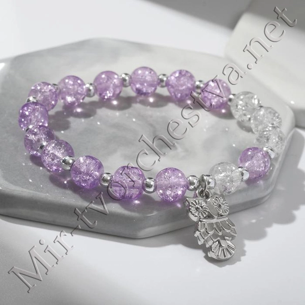 Браслет "Радость" сова, d=7мм, цвет Бело-сиреневый