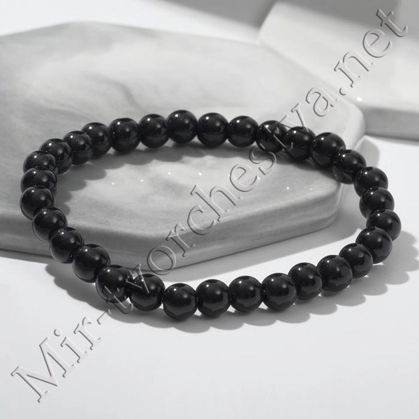 Браслет "Нить" бусина №6, d=7мм, цвет Чёрный